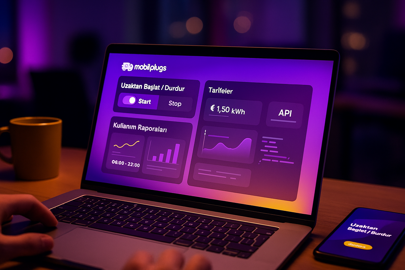 Mobilplugs, sahada hızlı takviye ve merkezi yönetimi birleştirir. OCPP 1.6 uyumlu yazılım, REST API ve raporlarla filonuzu güvenle ölçekleyin.